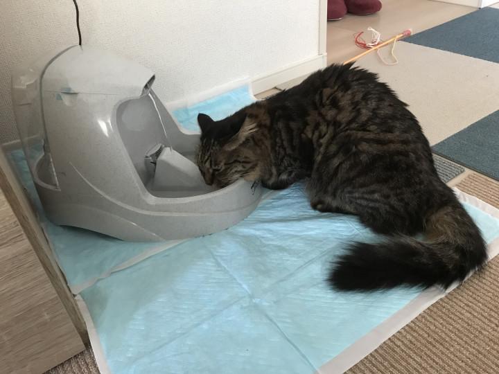 ちょろちょろ流れる水が気になって仕方ない、ろびん。