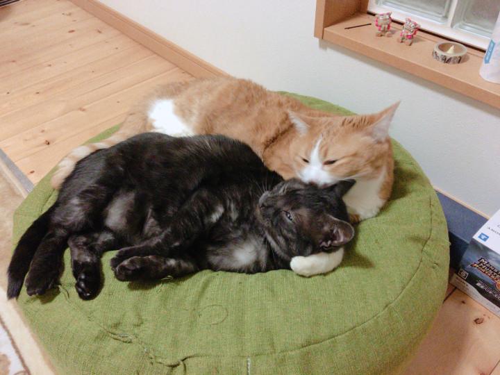 満足そうにゴロゴロしていたところに、なららも来てきららお姉ちゃんが毛繕いして寝かしつけてくれています(⁎˃ᴗ˂⁎)