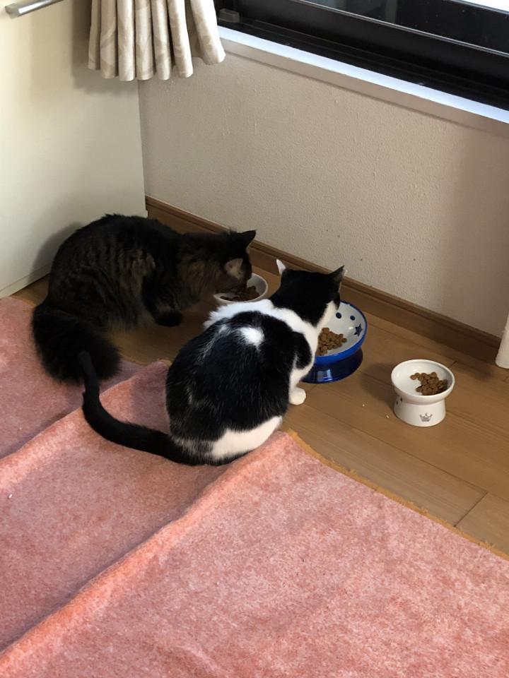 置きエサにしているので、ご飯はほとんどひとりづつなんですが昨日珍しくツーショットが見れました💕
