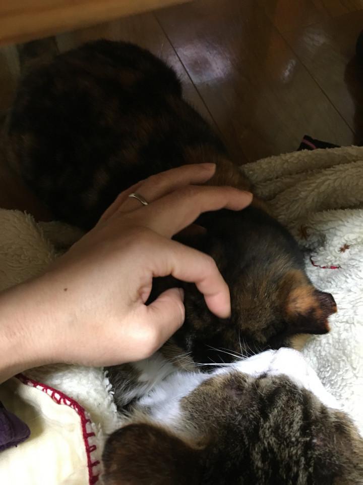 手が頭の方に行くと、身をすくめて逃げ出していたロミちゃんでしたが、本日触らせてくれました