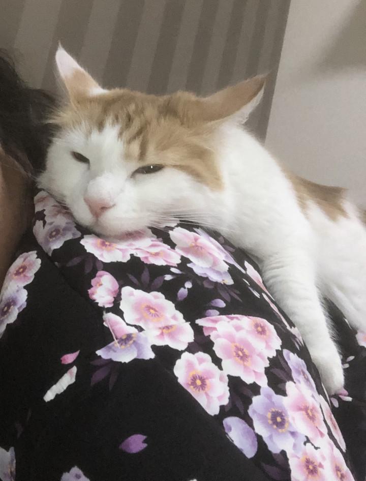 そのまま私の手のひらで寝る