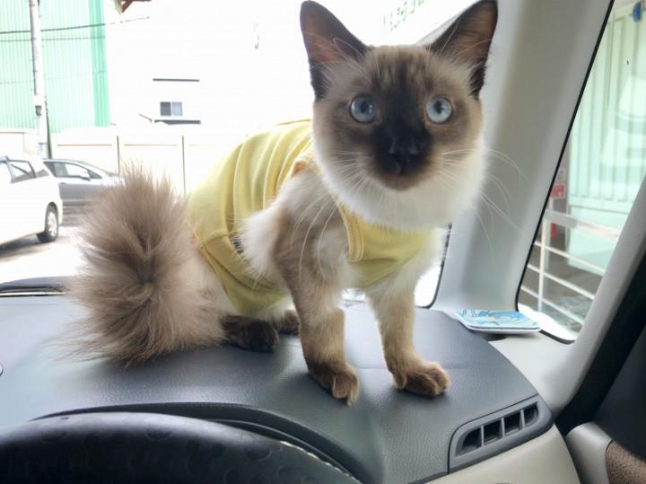 ケージから出せ出せコールがうるさいのでダッシュボード上を陣取るわがまま娘