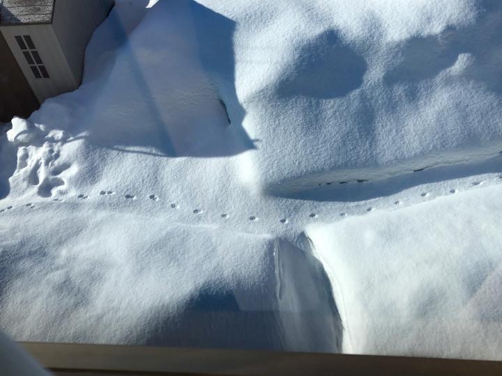 今朝、我が家の雪捨て場と化した庭に猫の足跡がありました