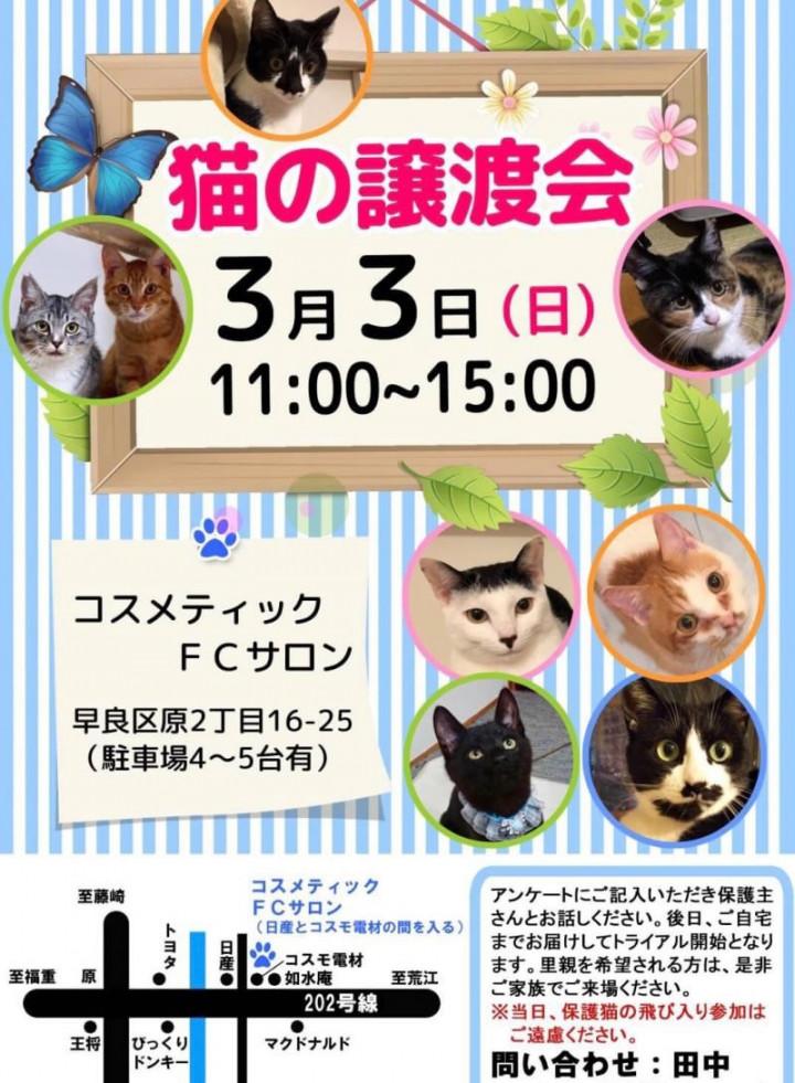 3/3(日)福岡市早良区原で譲渡会が開催されます!!