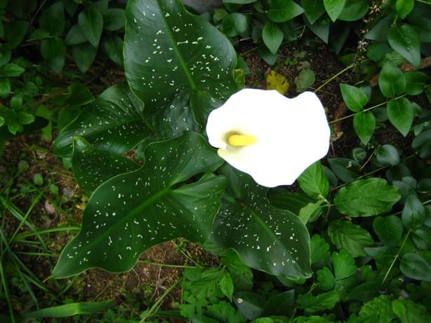 何年間も葉っぱしか出てこなかったカラー。