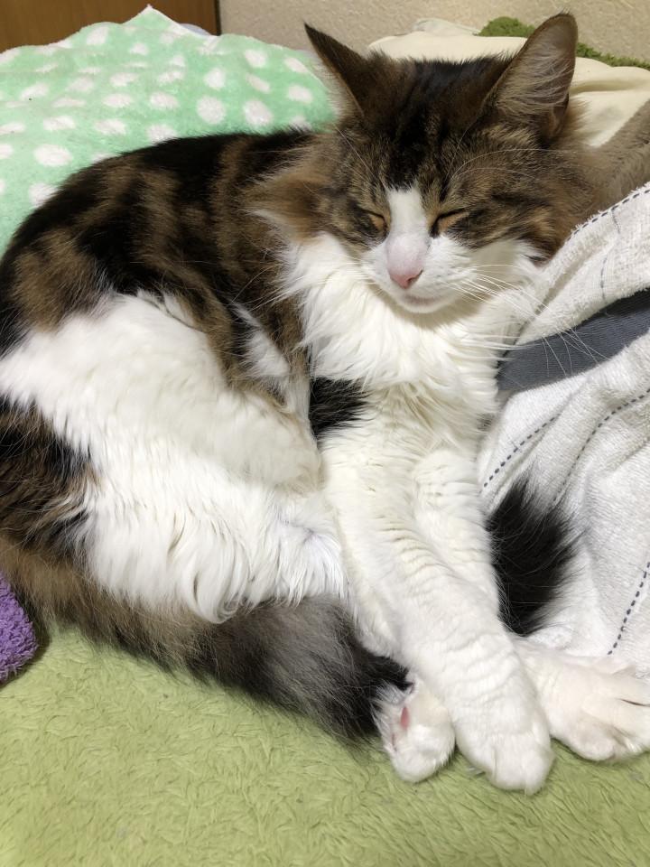 暑くなってくると枕の横に丸くなって寝てて、