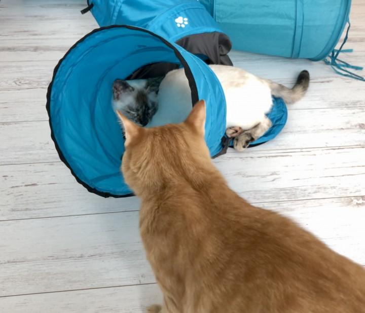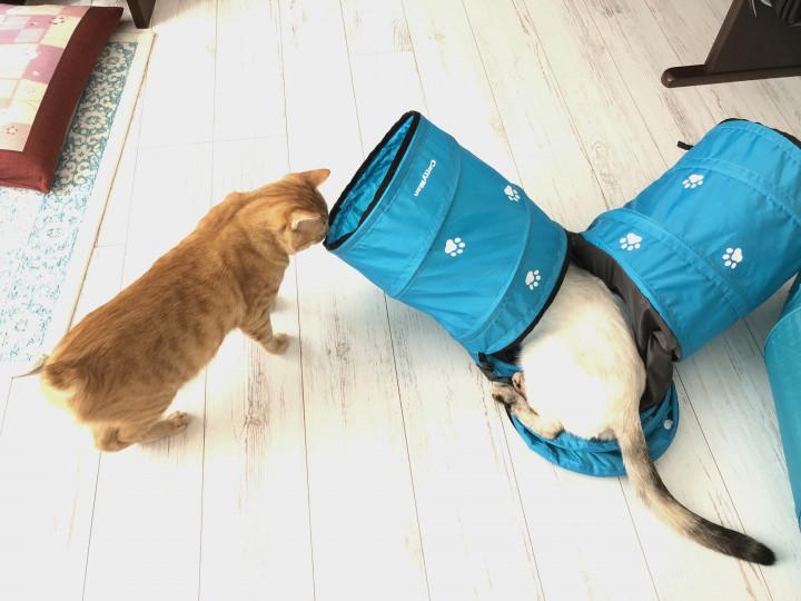 お気に入りのトンネルや座布団と一緒に寝るのです😊