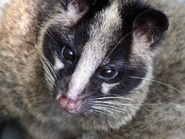 ハクビシンの顔と懐中電灯の距離は数十センチしかないのに。