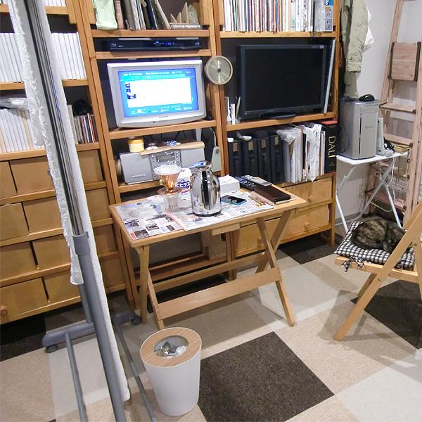 折り畳みのテーブルと椅子。自分のスペースはこれで十分ですが、カラメル姉妹とまったりするには不十分。