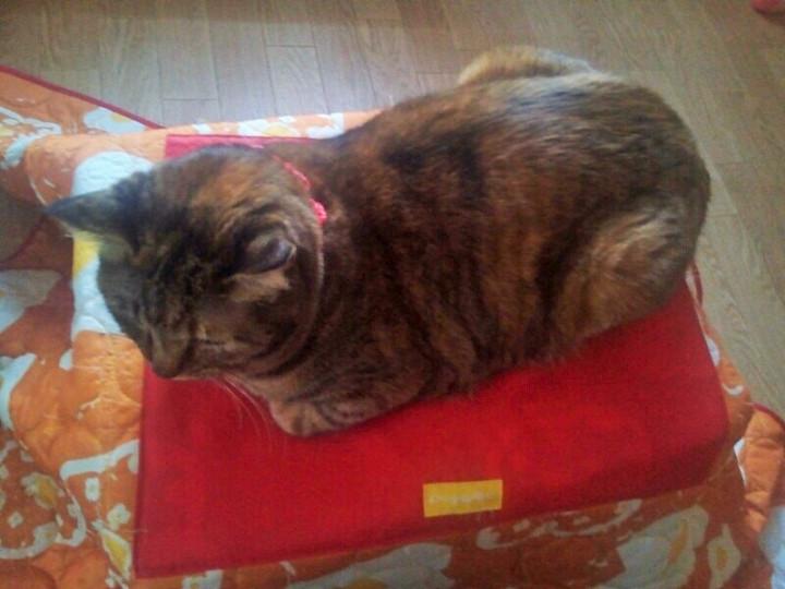 神に供えられた焦げた餅みたいに暖をとってました。