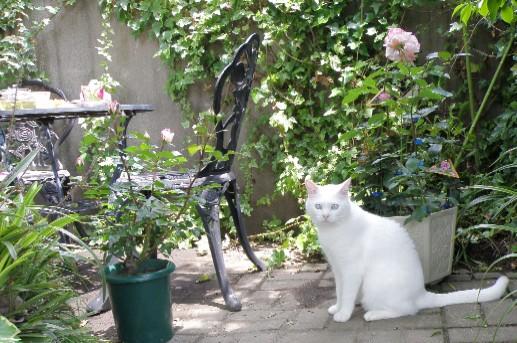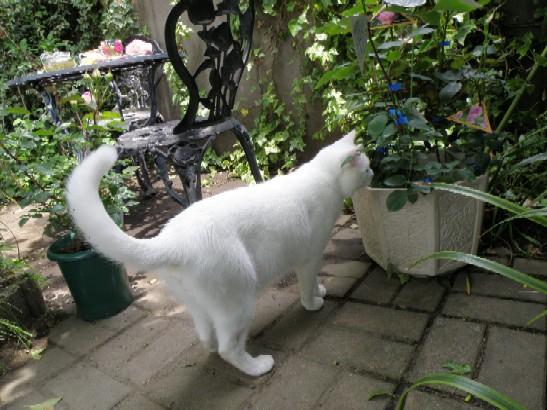 いかにも気がなさそうに花の鉢の処でクンクンして。