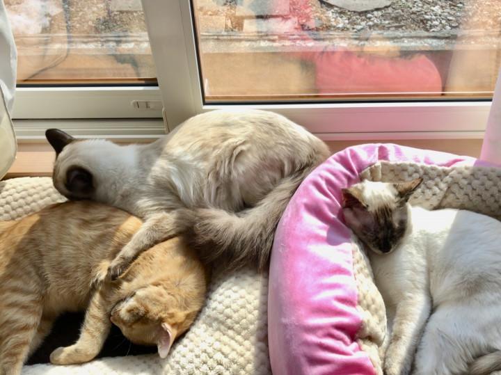 昨日の夜にこんな嫌がらせをしてしまった為、今日の昼はこの子達の好きな場所でお昼寝させました😴