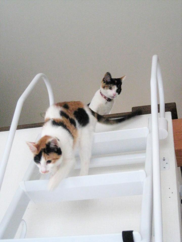 ロフトに登りたい。と、「にゃーにゃー」「ひゃっ。ひゃっ」と
