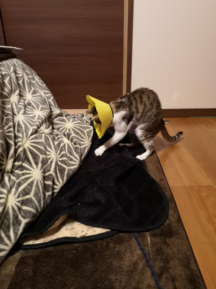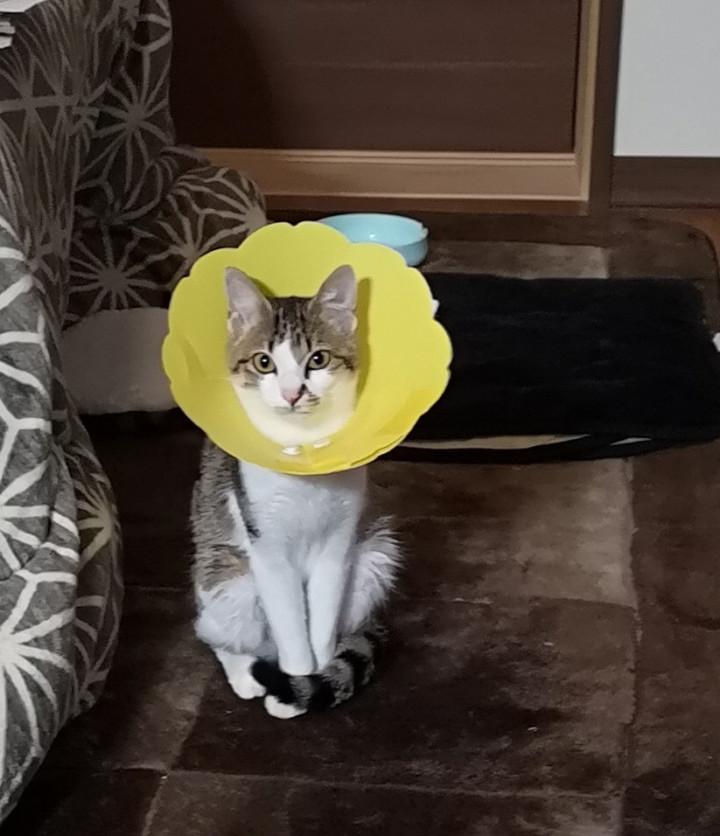急きょ違う動物病院で避妊手術してもらって、カラー付けるのかと