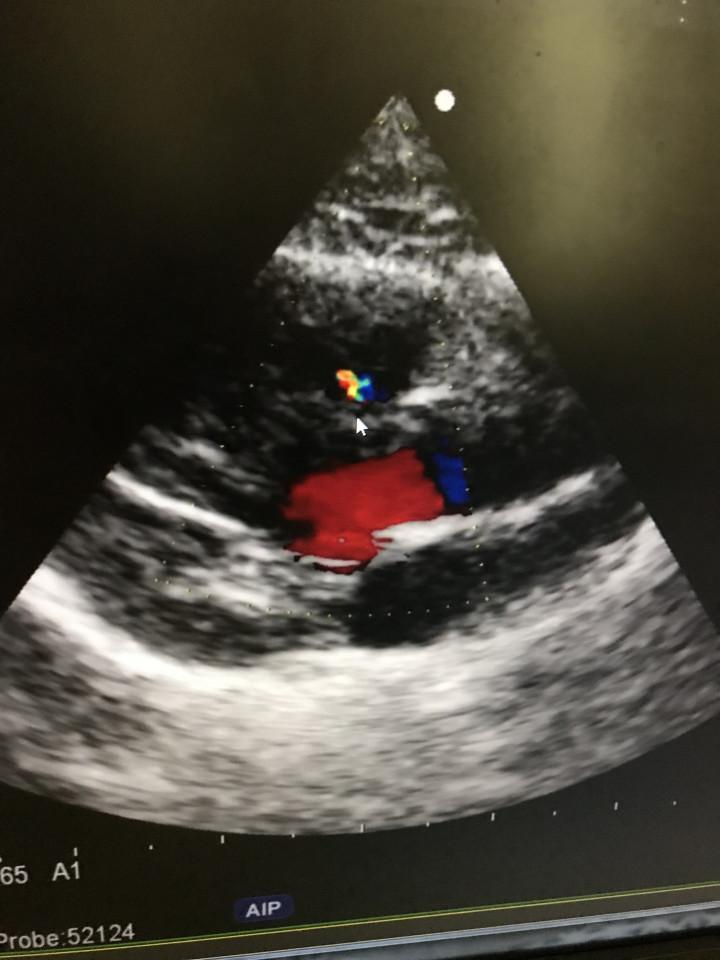 右心室と左心室の壁に穴が開いていて、右心室から左心室に血液が流れ出てしまう病気…