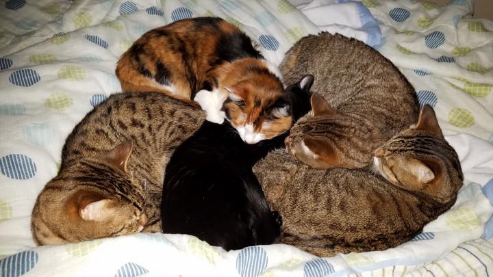 多分今シーズン最後の5匹猫団子🐱🐱🐱🐱🐱