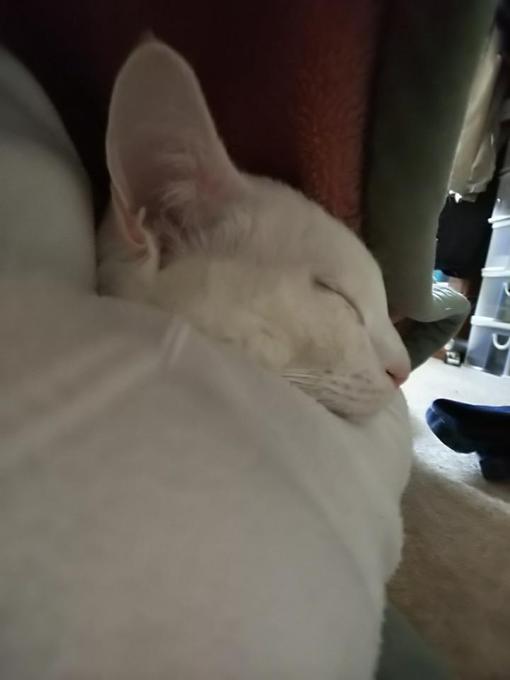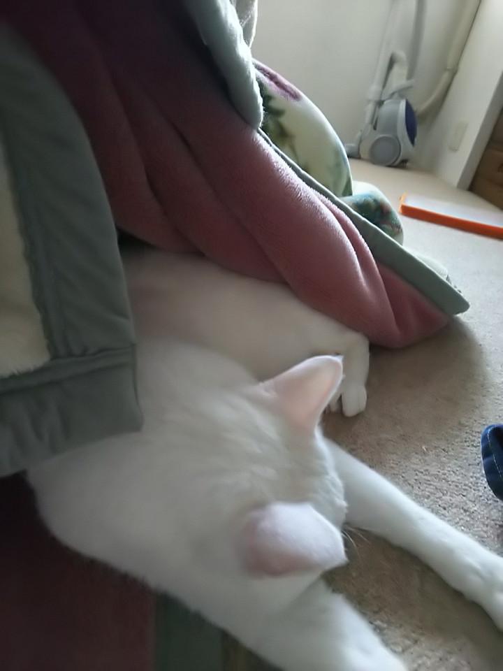 私が違う部屋に行って寝てみたら、布団に入ってきてくれて、いつもならすぐに出ていくのに、ぴったりひっついて腕枕で寝てくれ、一時間近く一緒にいました(=^ェ^=)。嬉しい…