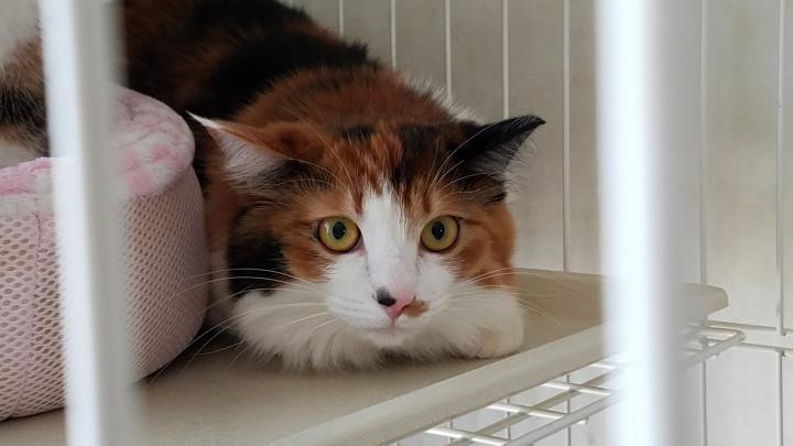 これは最初の見積りの時なんですが、ケージの中で伏せて耳はパタン⤵️⤵️⤵️