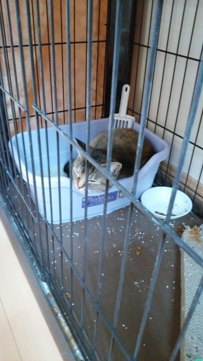 ゲージ生活慣れないせいかトイレで閉じこもりのななちゃん