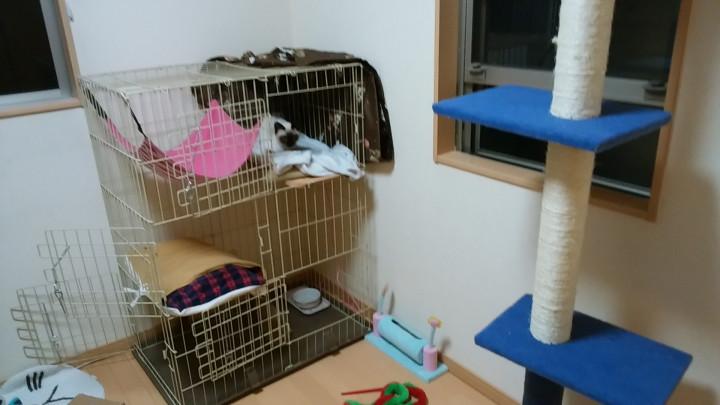 今までつみサビとななちゃんがいた場所に父ちゃんの3段ゲージを設置、父ちゃんはしばらくここで開放生活です~