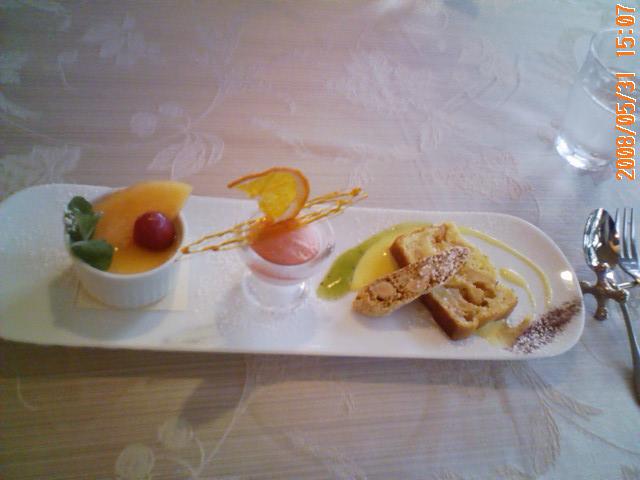 最後は、4種類のデザートと香りの良い紅茶。(飲み物も選択できるの)綺麗ですね。美味しくって幸せです。