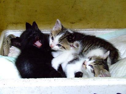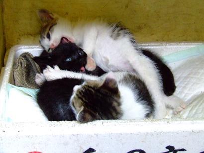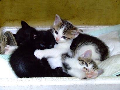 黒猫さん2匹、メタス&きよし柄(白×トラ)2匹です。