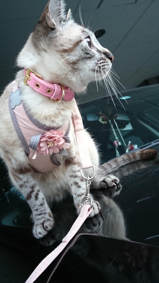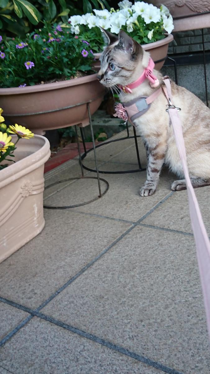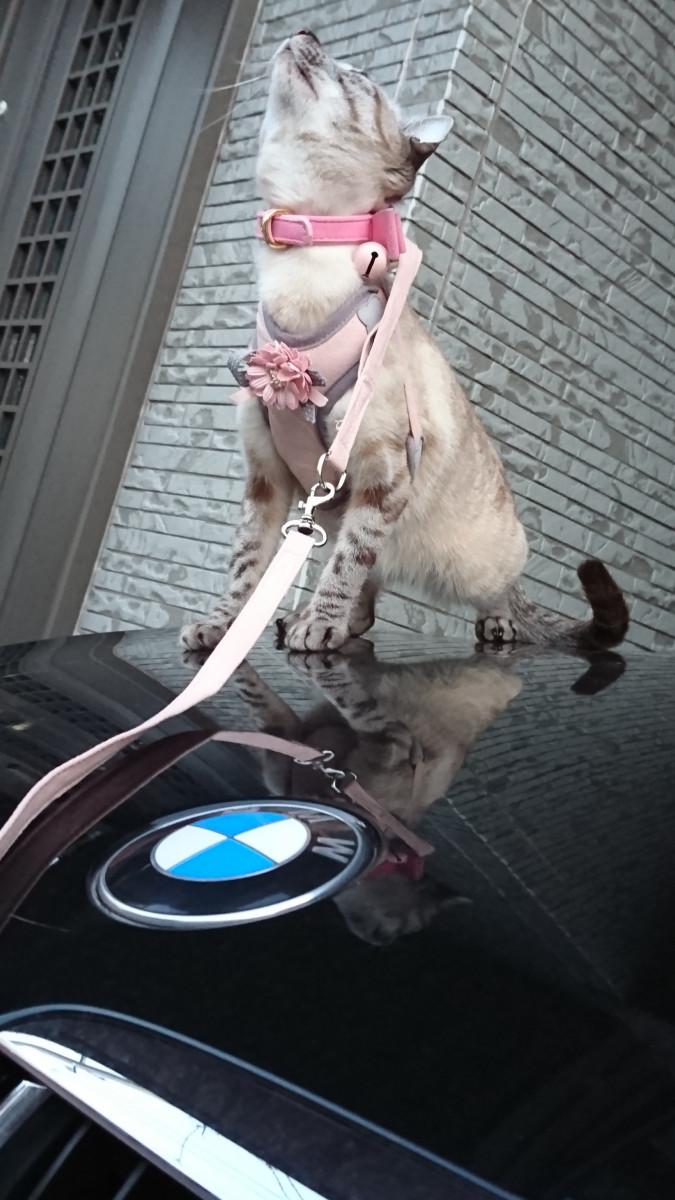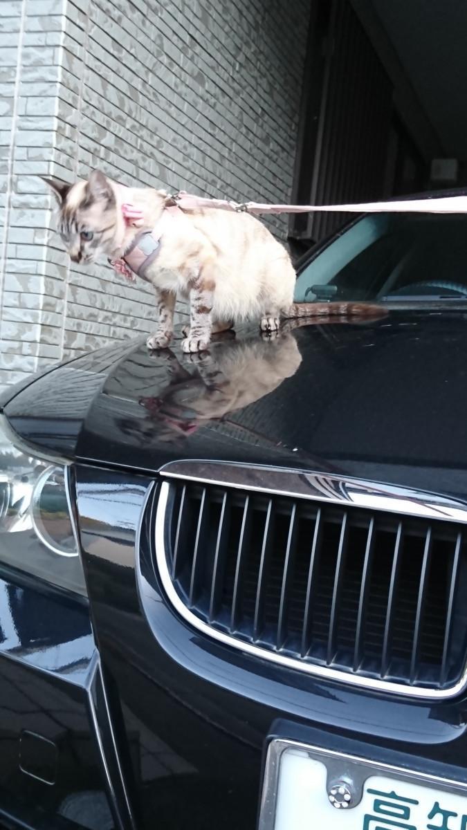 ボンネット暖かいニャ~🐱と上がりプランターに行きお花の匂いを嗅ぎ又ボンネットに😅