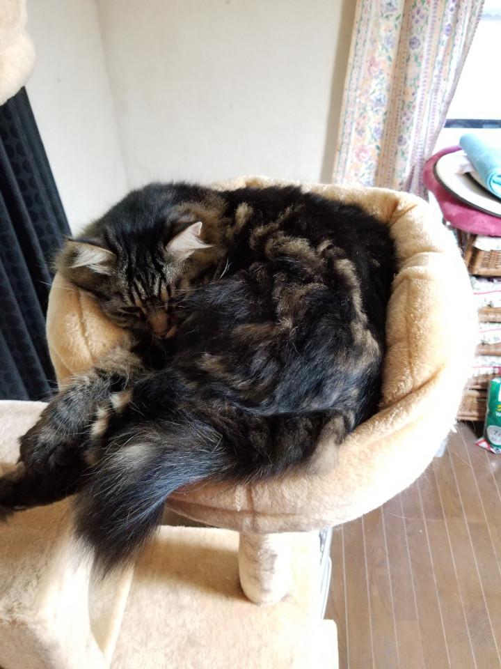 3日ほど前に気づいた、きなこの首に出来た大きな毛玉❗