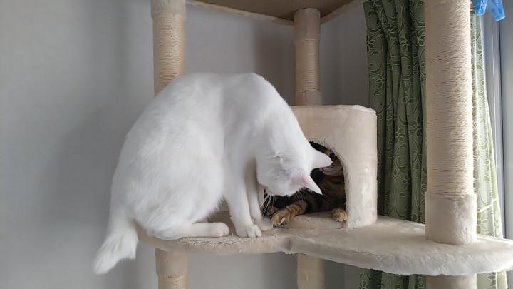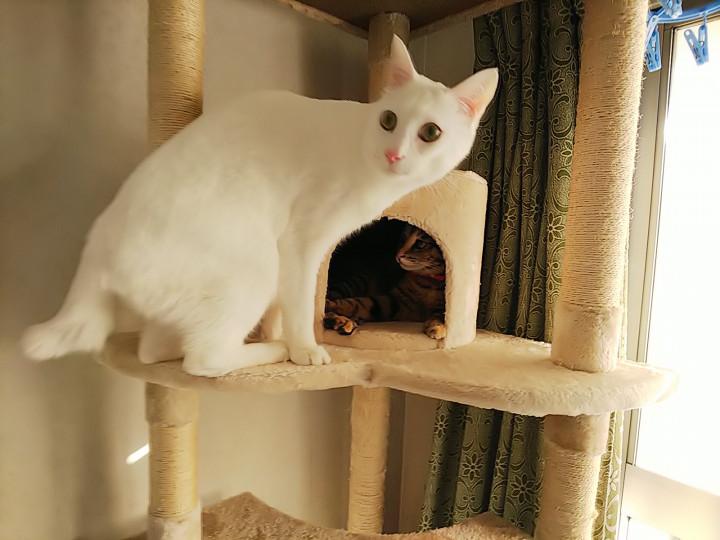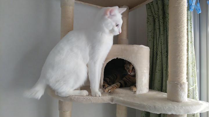 このキャットタワーも、最近はフガちゃんのお気にいり。