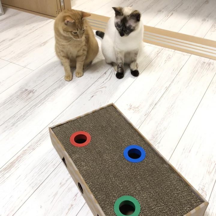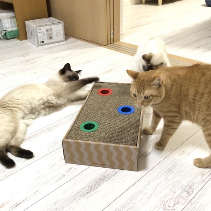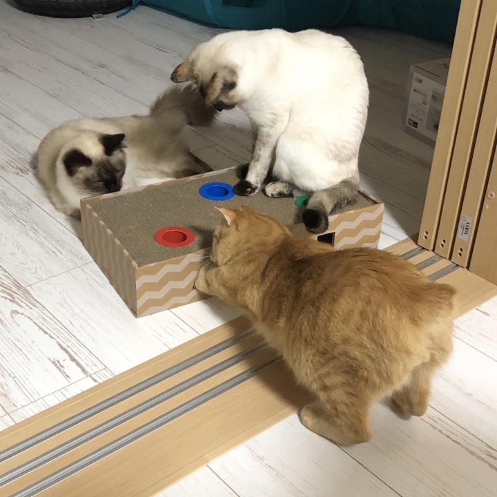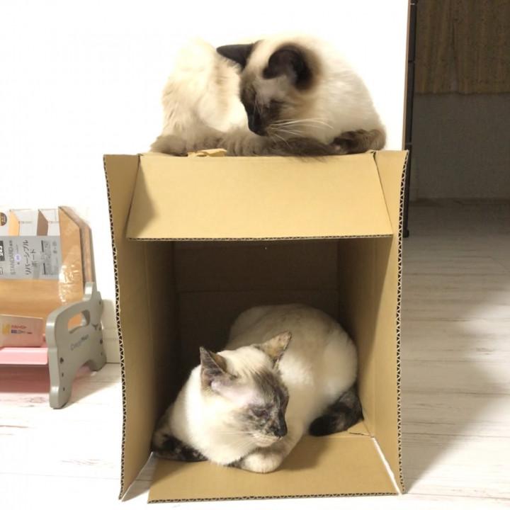 そして昨日、ネットで頼んでいたご飯が来たためお決まりのダンボール争奪…では無く今日はお互いに妥協した結果こうなりました