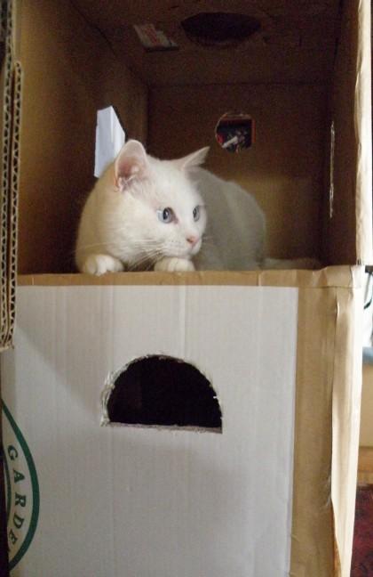 1階にはあと窓が3つ有るよ。何時か三角窓から見てたら、お母さんが、カシャって、早速ネコ写に投稿してた。