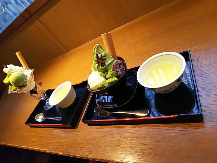 錦市場行って卵焼き買って、いつもの店でご飯食べて…抹茶パフェ食べて。