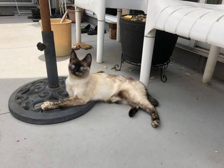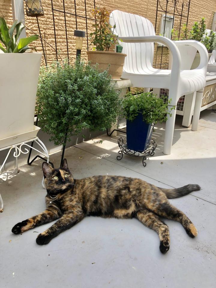 お天気も良くとても過ごしやすい今日この頃、みんなやっぱりお外が好きで、よくベランダに出ています土掘りも精が出て毎日掘りまくり!あんまり掘るのでねこ退治用のハーブをさしてみた