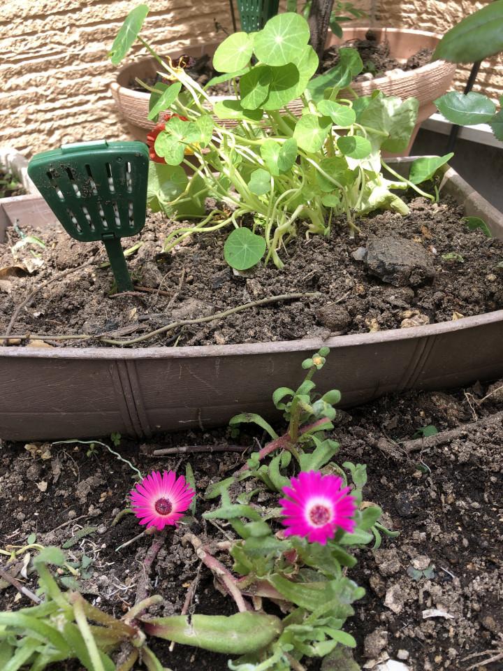 。最初は少し効果あってしめしめと思っていたけど、(効果2か月と書いてある、まだ、10日くらいしか経っていない)やっぱり掘る。。。花芽も食べてみて、鉢をひっくり返し(TT)ワイルドなハチとロク