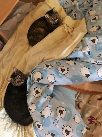 はい私の布団は既に占領されたあげくグシャグシャに…トホホ _| ̄|○