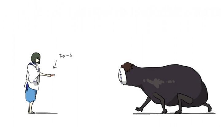 最後チャペママに貰ったハクにチュールで釣られるカオナシ