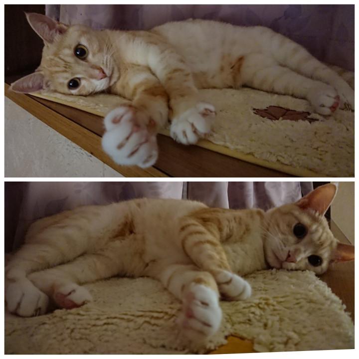 暑くなってきたので 出窓に使ってない綿のマットを敷いてあげると