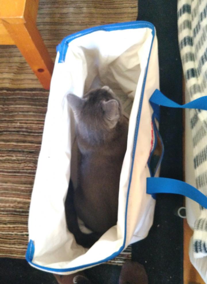 ロダン、Costcoのクーラーバッグがお気に入り。アメリカンサイズなのに、ロダンが入ると丁度良く見えるのは本ニャンがデカいから(笑)