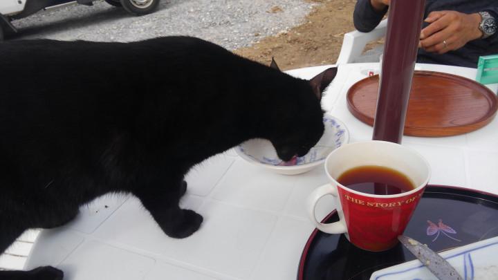 ミケさんはほえ~っと花壇の中で妖精になってるし、黒さんはサラダのマヨネーズの残りを食べにくるしww