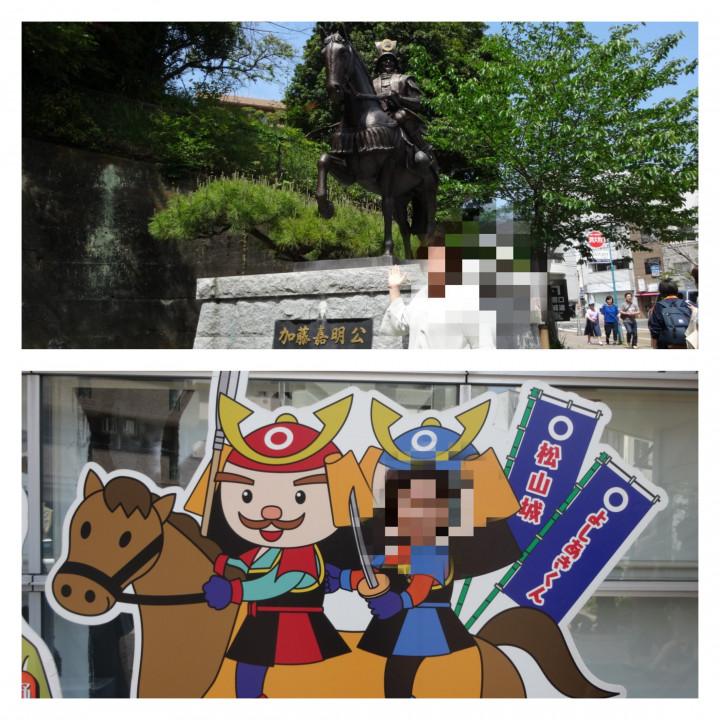 お城をあとにしたところで、嘉明公と一緒に記念撮影です。