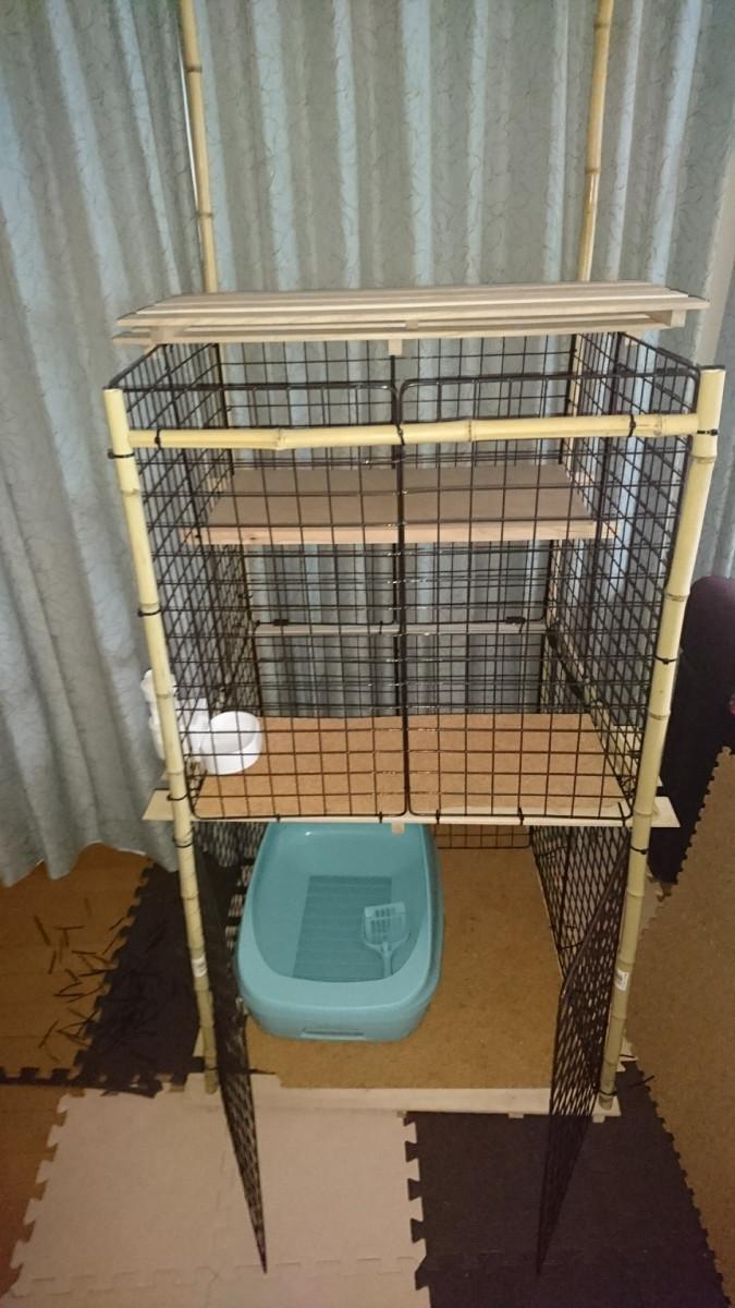 ニャンモックもケージ内に作ろうと欲張ってましたが、設置にちょうどいい高さが分からず諦め・・・。