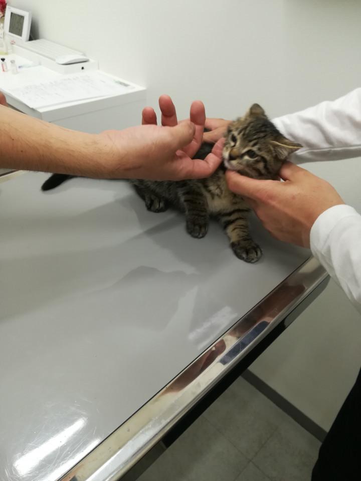 武蔵は好奇心強めなのでキャリーから出たがったり、診察室を探索したがったり、してるうちにチクリ。