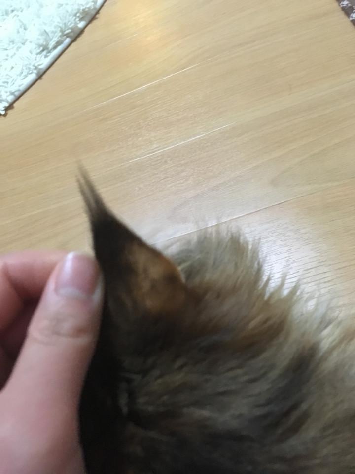 今でもラテの耳にはカビが生えたせいで一部の毛が生えていないです。
