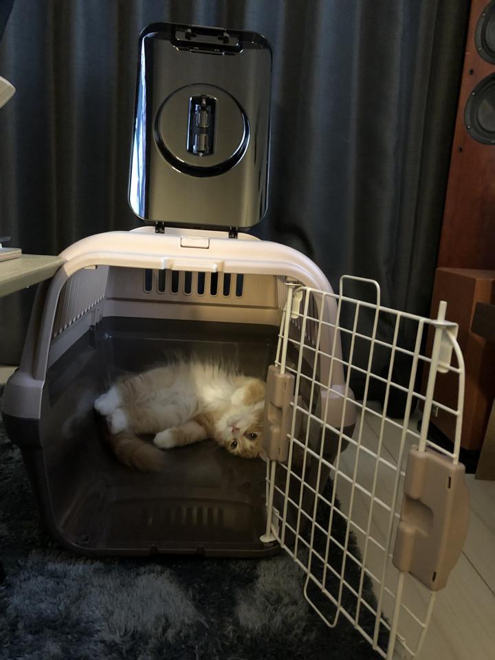 洗濯ネットで捕獲してからキャリーに入れないと大暴れでいつもそれだけで一苦労でしたが、