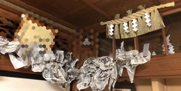 あと、今日仕事から帰ってきたら神棚に登らないようにって新聞紙が夏に向けて団扇になっていました。