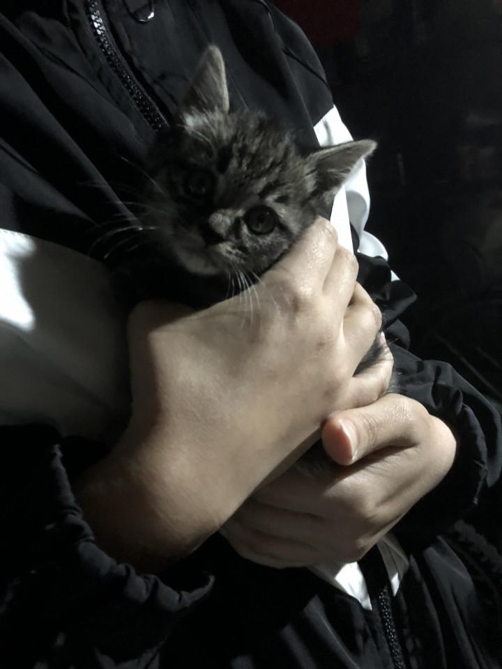 手を伸ばすと威嚇はしているものの、動けなくなっているようで私はすんなり、仔猫を確保できたのです。