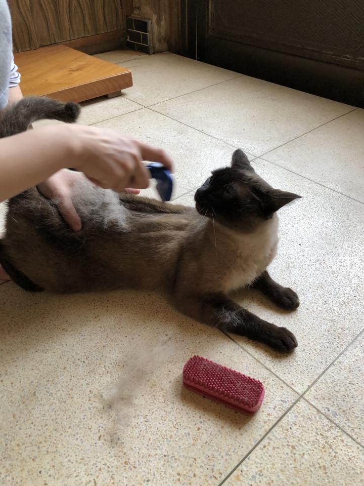 『めめ』は模様だけシャム柄でアンダーコートビッチリなので本当に抜け毛が凄いんです。