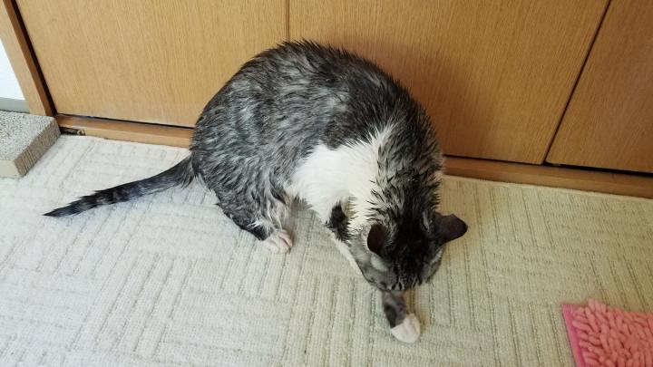 タオルドライまではどうにか我慢してくれるけど、ドライヤーの風がどうも嫌みたいで洗面所のドアをこじ開けようと喚きながら爪をたてるのでドライヤーは断念