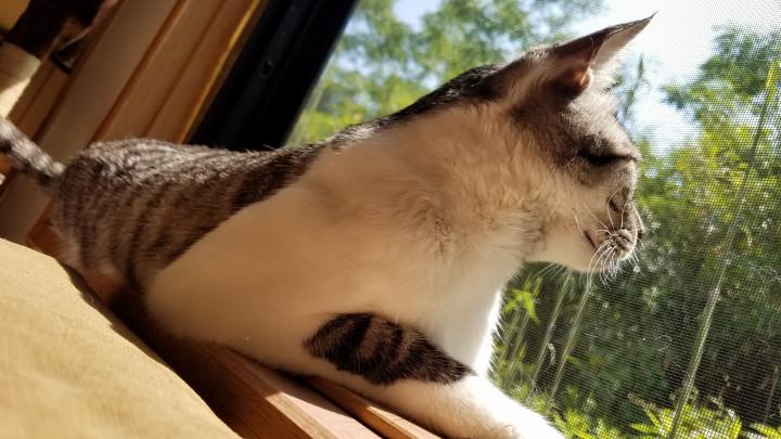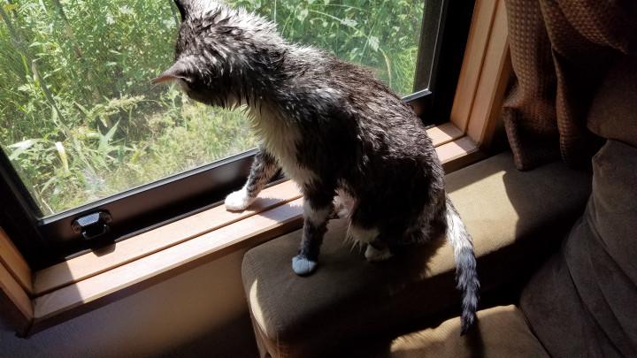 濡れてしまったら観念するのかたまに「なぉ」「あぉ」と鳴く程度💧