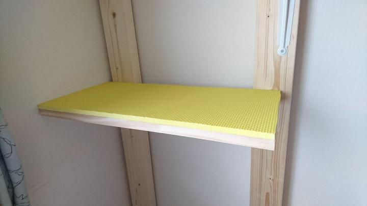 100均のフロアクッションをステップのサイズに切り、両面テープでべったりと。